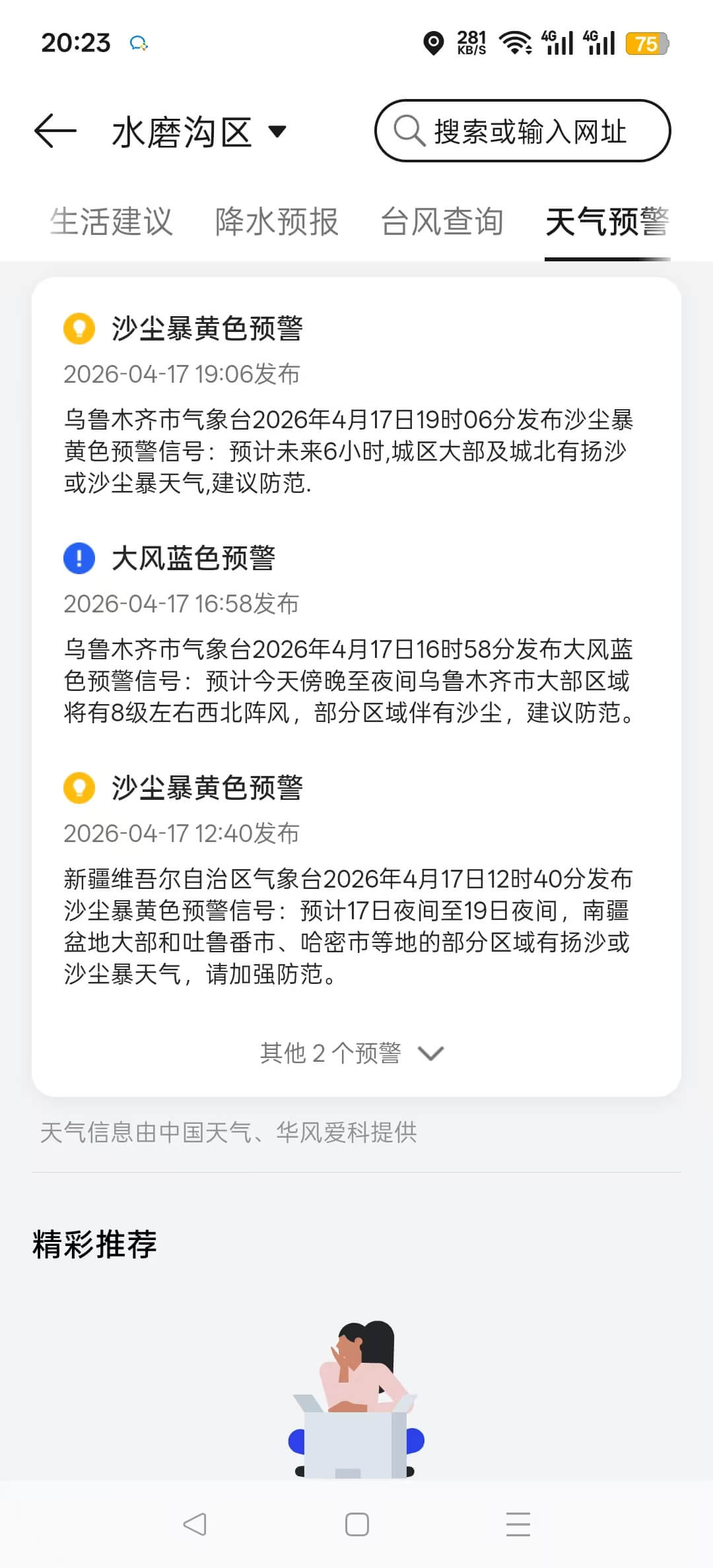 正文 乌鲁木齐沙尘暴 nudt V管理员 /今天/15阅读/0评论 0417 文章最后更新时间2026年04月17日,若文章内容或图片失效,请留言反馈! 乌鲁木齐市已于2026年4月17日19时06分发布沙尘暴黄色预警信号,预计未来6小时内,城区及城北将出现扬沙或沙尘暴天气,需注意防范。 结合近期气象背景和历史模式,当前沙尘天气的主要成因包括: 强风输送:近期受冷空气影响,西北风增强,尤其在风口区域(如达坂城)阵风可达8–10级,有效搬运地表沙尘。 地表干燥疏松:春季气温回升快,土壤水分蒸发迅速,加上春耕活动扰动地表,形成大量可起沙尘源。 地理位置因素:乌鲁木齐位于准噶尔盆地南缘,邻近古尔班通古特沙漠,天然沙源丰富